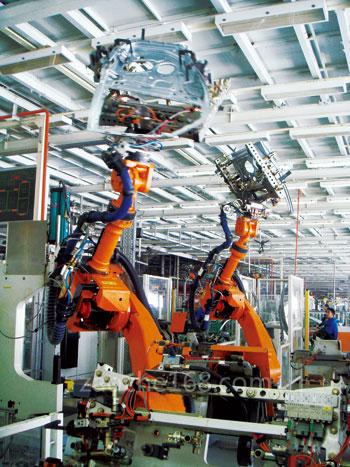 功能齐全、高集成化的柔性生产已经受到了广大汽车制造商的青睐,而工业机器人也已经成为了新宠,在汽车业竞争日益激烈的今天,一汽—大众正以市场为导向,以先进的技术、科学的管理、优良的服务为造出高安全性、高环保性的价值经典乘用车而努力。轿车二厂焊装车间将随着一汽—大众一起成长,机器人的应用也将越来越普及。
