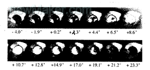高速摄影试验是在与莫尔偏折测试一致的试验工况下进行的,其光路的布置与图2相 比仅仅少了一对Ronchi刻度光栅,其余完全相同。测试时发动机的转速为830 r/min,每循 环供油量为0.077 mL。高速摄影机以2 400帧/s的速度拍摄下整个燃烧过程 及各瞬间涡流室内莫尔条纹的变化。