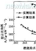 图5为不同着火点φi下模拟计算结果与SD195A柴油机实测燃油消耗率的比较图。由图可知:当选定ε、Xp、pmax等指标后,其计算误差不大。需要说明的是:因机器瞬时摩擦功的计算较为复杂,故图中实测燃油消耗率已按机械效率80%折算为指示指标,在未能精确测定柴油机机械效率的条件下进行此种换算会产生一定的误差。