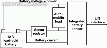(3)通信界面:目前本地网络连接(LIN)是电池传感器和ECU之间通信最常用的通信界面。LIN是相对于CAN协议的单线,低成本的解决方案。