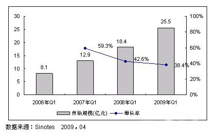 图12006-2009年中国RFID第1季度市场规模及同比增长率