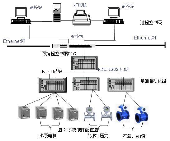 除盐水生产线自动化控制系统设计由两级网络组成,一级是过程控制级,二级是基础控制级。