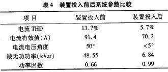 在某油田计量间安装D-STATCOM装置进行实验,测得的数据如表4所示。从表4的数据可以看一出,在D-STATCOM装置投运后,系统电能质量的各项参数都有了比较大的改善和提高。