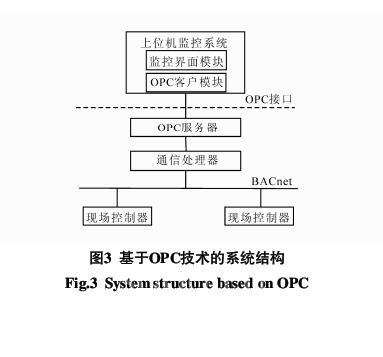 中央站监控系统包括监控界面程序模块和通讯程序模块,通讯程序模块就是一个OPC客户程序。OPC客户程序作为监控系统的数据通讯模块,负责监控界面程序与现场控制设备之间的通讯,系统结构如图3所示