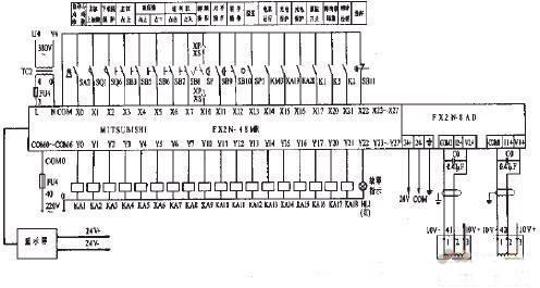 在使用FX2N-8AD时,可以根据PLC主单元和其连接的方法,用TO指令来设置输入模式,从而可以从电压输入、电流输入和热电偶输入(温度输入)中,选择模拟输入信号FXZN一SAD可以在每个通道选择不同的模拟输入,运用于该部油压机时,我们把FXZN一SAD直接连接到FX2N系列PLC上,选择了通道1和通道2,两通道都是电压输入。