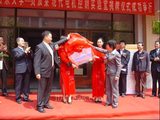2009年4月28日上午,山东大学—贝加莱电机控制实验室揭牌仪式在山东大学南校区隆重举行。贝加莱(中国)区总经理、山大校友、山东大学客座教授肖维荣博士、山东大学副校长樊丽明女士、设备处处长马传峰教授、电气学院副院长王秀和教授、学院相关负责人以及电气学院部分老师和学生参加了揭牌仪式。揭牌仪式由山东大学电气学院院长刘玉田教授主持。