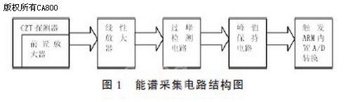 | 摘要:介绍了能谱型核测井仪的设计方案,其目标是研制适用于铀矿勘查的便携式测井仪,满足测井生产的需要。该仪器采用碲锌镉CdZnTe 半导体核辐射探测器,高端的32 位嵌入式ARM 处理器S3C2410A 为仪器系统控制核心,并在此硬件平台上移植了嵌入式Linux 操作系统,编写了基于MiniGUI 的测井仪监控终端软件。仪器具有实时性、体积小、功耗低、灵敏度高、成本低、便于携带等特点。 关键词:嵌入式系统; Linux; MiniGUI; 核测井仪; 碲锌镉半导体探测器 Energy Spectrum Nuclear logging Instrument based on Embedded System SHEN Hong-zhong, TANG Bin (School of Information Engineering, East China Institute of Technology, Fuzhou 344000, China) Abstract: This paper introduces a design project of energy spectrum nuclear logging instrument,the purpose of such instrument was to provide a portable device suitable to the prospecting and exploration of uranium deposit. This instrument uses CdZnTe detector as nuclear radiation detector and S3C2410A, a 32-bit high performance embedded ARM processor, as micro processor unit. Based on this hardware platform, embedded Linux system is ported. The monitoring system of nuclear logging instrument is developed by using MiniGUI. The instruments carry the characteristic of small size, low power, high sensitivity, low cost, and outstanding portability. Key Words: embedded system; Linux; MiniGUI; nuclear logging instrument; CdZnTe detector 1 引言 民用非动力核技术是国家鼓励发展的高新技术,其中核测井技术是随着当代科技的发展以及它在石油、煤炭、铀矿等地质矿产勘探领域的应用而迅速发展起来的尖端测井技术之一。目前, 适用于铀矿核测井的国产仪器较少, 主要有成都理工大学研制的HFC-1 型γ 能谱测井仪器、核工业北京地质研究院研制的HD-4002 型综合测井仪等。这些仪器多数采用笔记本电脑为测井仪器系统的控制核心,为了能够更好适应野外测量工作的复杂环境,便于野外携带使用,本文将采用基于32 位处理器ARM 的嵌入式系统为测井仪系统的控制核心,并在此基础上开发相应的软硬件。 2 能谱型核测井仪的理论基础 众所周知,地壳的岩石和土壤中都有一定数量的放射性元素存在着,他们能够自发地放出放射性射线。在自然界中,这些放射性射线主要来自铀-238 系列、钍-232 系列和钾-40 系列等天然放射性元素。这些放射性元素有着各不相同的γ 射线特征谱峰,如铀、钍、钾的特征谱峰分别为1.76 MeV、2.62 MeV、1.47 MeV,因此可以根据测量所得的能谱数据,判定测量点位置的放射性元素成分,即进行放射性元素的定性分析。同时,放射性元素的含量与它的γ 射线强度成正比,因此只要计算出放射性元素的γ 射线强度,就可以得出相应的放射性元素含量,放射性元素定量解释方法主要有平均含量法、传统剥谱法与逐点剥谱反褶积解释法等。 能谱型核测井方法是通过研究天然产生或人工激发的放射性射线谱沿井轴的分布特点而确定该地层中的某些元素成分和含量的一种无损检测方法。能谱型核测井仪就是使用能谱型核测井方法在野外现场测量伽玛射线能量谱,分析铀、钍、钾等放射性元素的性质和含量的一种仪器。 3 核测井仪的总体方案设计 能谱型核测井仪必须满足体积小、性能稳定、功能强、灵敏度高、便于野外携带使用等需求。针对这些需求,对能谱型核测井仪提出以下的设计方案: 3.1 数据采集硬件系统设计方案 数据采集硬件系统主要由井下探管、自动绞车、能谱采集电路组成。 井下探管主要包括核辐射探测器、前置放大器、探管外壳、电源等。目前国内外的核辐射探测器主要有闪烁体探测器(如NaI(T1)无机晶体闪烁器)、半导体探测器(如高纯锗HPGe 半导体探测器、碲锌镉CdZnTe 半导体探测器)等。室温碲锌镉(CZT)半导体核辐射探测器是继闪烁体探测器之后发展起来的一类新型先进的探测器,室温半导体核辐射探测器被认为是一种理想的探测器,它既具有低温半导体探测器的能量分辨率好,又具有闪烁晶体探测器的探测效率高,同时还具有体积小、重量轻、携带方便等优点,因此选择碲锌镉(CZT)半导体核辐射探测器为能谱型核测井仪的探测器。探管外壳用不锈钢材料制作,同时做好防水密封性能,能满足在测井的高温高压条件下正常工作。 自动绞车负责控制井下探管的运动,实现探管在测井中进行逐点测量方式或连续测量方式的移动功能,并向嵌入式系统控制核心传送井下探管的深度值。 能谱采集电路实现对碲锌镉(CZT)探测器输出的电脉冲信号线性放大、调整与去除信号噪声,并将测量脉冲信号的范围平均分成多个脉冲幅度间隔,然后统计处理后的脉冲信号在各个脉冲幅度间隔的个数,以便形成各个脉冲幅度的计数分布曲线。能谱采集电路主要由线性放大器、过峰检测电路、峰值保持电路、触发ARM920T处理器S3C2410A内置A/D模数转换等组成。其电路结构如图1 所示。 ![]() 3.2 嵌入式系统在能谱型核测井仪中的应用 3.2.1 嵌入式硬件系统 能谱型核测井仪系统的控制核心ARM920T处理器S3C2410A是一款高端的32 位低功耗RISC微处理器,具有最高工作频率203MHZ、独立的16KB 指令Cache与16KB数据Cache。存储系统采用2MB的NOR Flash、128MB 的NAND FLASH 与64MB 的SDRAM 相结合,作为程序运行和数据存储空间。并设计了各种相应的外围接口,主要包括LCD接口、SPI键盘接口、USB 接口、以太网接口、RS232 接口与多道分析器MCA 接口等。采用5.4 英寸的LCD 真彩显示屏,因S3C2410