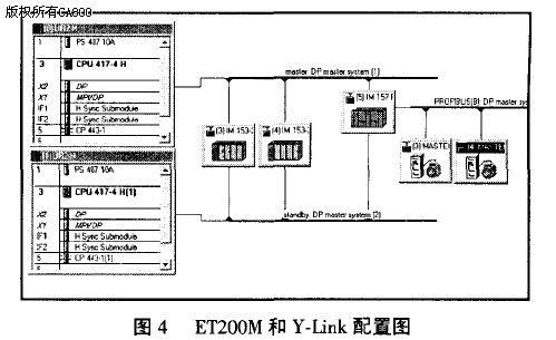 | 摘要:结合出口土耳其产品,针对六米焦炉电气控制系统中应用的PROFIBUS-DP总线通讯技术,阐述了PROFIBUS—DP网络系统在工业控制当中的具体应用。 关键词:PROFIBUS—DP; 冗余; Y—Link; ET2OOM 1 前言 随着计算机控制的迅速推广和普及,许多企业已大量使用各种可编程设备,如工业控制计算机、PLC及变频器等。有的企业已经实现了全车间乃至全厂的综合自动化,即将不同产品的可编程设备连接在单层或多层网络上,使它们相互之间进行数据通信,实现分散控制和集中管理。因此,通讯与网络已成为控制系统中不可缺少的重要组成部分,也是控制系统中设计与维护的重难点之一。 2 软硬件构成 PROFIBUS是不依赖于生产厂家,且开放的现场总线,各种自动化设备均可通过同样的接1:3交换信息。PROFIBUS-DP是一种高速低成本通信,用于设备级控制系统与分散式I/O的通信。使用PROFIBUS—DP可取代24VDC或4-20mA信号传输。特别适合于PLC与现场级分布式I/O设备之间的通讯。 2.1 硬件 (1)总线连接器 PROFIBUS—DP标准推荐总线站与总线的相互连接使用9针D形连接器。D形连接器的插座与总线站相连接,而D形连接器的插头与总线电缆相连接。连接器的接线见表1。 ![]() (2)总线终端器 在数据线A和B的两端均应加接总线终端器(见图1)。总线终端器的下拉电阻与数据基准电位DGND相连;上拉电阻与供电正电压 相连。当总线上无站发送数据时,这两个电阻能保证总线上有一个确定的空闲电位,采用开关来选择是否使用它。 ![]() 2.2 软件 (1)通讯模型PROFIBUS-DP可以使用灵活的拓扑结构,支持线性、树形、环形结构以及冗余的通讯模型。 (2)电子设备数据文件(GSD) 为了将不同厂家 生 产 的PROFIBUS产品集成在一起,生产厂家必须以GSD文件,即电子设备数据库文件方式提供这些产品的功能参数(如I/O点数、诊断信息、波特率及时间监视等)。标准的GSD数据将通信扩大到操作员控制级。使用根据GSD文件所作的组态工具可将不同厂商生产的设备集成在同~总线系统中。GSD文件可分为三个部分: ① 总规范包括生产厂商和设备名称、硬件和软件版本、波特率、监视时间间隔及总线插头指定信号。 ② 与DP主站有关的规范,包括各项参数,如允许从站个数、上装/下装能力。 ③ 与DP从站有关的规范,包括从站输入/输出通道数、类型及诊断数据等。 3 应用 下面以出口土耳其六米焦炉为例,对PROFIBUS—DP网络通讯如何实现控制进行具体阐述,见图2。 ![]() 3.1 冗余系统 土耳其六米焦炉的CPU采用的是西门子s7—417H冗余系统。打开STEP7,在STEP7中新建一个项目,在Inset菜单下的Station选项中选择SIMA—TICH Station,添加一个新的S7—400H站。具体组态步骤如下: (1)在S7.400H站目录下双击ttardware打开硬件配置。 (2)添加一个UR2 H机架。 (3)配置电源和CPU,并设定CPU上PROFIB—US DP主站的地址为2。 (4)添加同步子模板到IF1和IF2槽位上。 (5)添加以太网网卡并配置MAC网络地址。只有以太网可以与HMI系统WINCC通信。 (6)将机架0的硬件配置拷贝、粘贴、复制机架1并调整网络参数,如以太网的MAC地址等,在硬件组态中出现两个机架,见图3。 ![]() (7)系统参数设置 容错站中的模板参数赋值与s7—400标准站中的模板参数赋值没有什么区别。对于中央处理器单元只需对CPU0(机架0上的CPU)设定CPU参数,所设定的数值将自动分配给CPU1(机架1上的CPU)。 若CPU0和CPU1没有形成环网,那么两者参数完全一样,否则,以下参数CPU1的设置将与CPUO不同。 · CPU的MPI地址 · 集成PROFIBUS DP接口站地址和诊断地址 · I/O地址区中的模板在I/O地址区编址的模板必须完全在过程映象内或完全在过程映象外,否则不能保证数据的一致性。 CPU系统参数设置具体如下: (1)点击Cycle/Clock menlory(循环/时钟存储器)选项栏,设置CPU循环处理参数。 建议设置: 扫描循环监视时间尽可能长(如6000 Ills) 过程输入映象尽可能小(稍大于实际使用的输入点数) 过程输出映象尽可能小(稍大于实际使用的输出点数) 出现I/O访问错误时调用“OB 85”,只用于输入错误和输出错误的情况。 (2)设置诊断缓冲区中的报文数量 在“Diagnostics/Clock(诊断/时钟)”选项栏中可以设置诊断缓‘冲区的报文数量建议设定较大数值,如l000。 (3)模块的监控时间 在“Staltup(启动)”选项栏中,可以指定模块监视时间,它取决于容错站的配置。如果监视时间太短,CPU将在诊断缓冲区中输入W"I6"6547事件。 参数的传输时间取决于以下因素: · 总线系统的传输速率(传输速率高=>传输时间短) · 参数和系统数据块的大小(参数长=>传输时间长) · 总线系统上的负载(从站多=>传输时间长) 建议设置:600(对应于6O秒) (4)CPU自检周期 在“H Parameter(冗余系统参数)”选项栏中,配置CPU后台自检的周期。可选范围为10——60000min。建议设置:使用缺省值90min。 3.2 配置ET200M从站 I/O模块采用PROFIBUS—DP远程通讯的方式,用ET200M来实现。具体步骤如下: (1)点击DP总线“master:DP master system(1)”,在硬件目录PROFIBUS DP下,选择一个IM153—2的站点,双击添加一个ET200M站。 (2)设定ET200M站的地址。 (3)在ET200M站上添加I/O模块。从站配置后见图4。 3.3 Y—Link 由于该设计采用冗余系统,故在现场的控制级设备的DP通讯就必须用Y—Link来实现。配置Y—Link耦合器步骤如下: (1)点击DP总线“master:DP master system(1)”,在硬件目录的DP/PA Link下选择IM157,并双击添加一个站。 (2)设定Y—Link站地址 (3)选择将Y—Link设置为一个DP/DP耦合