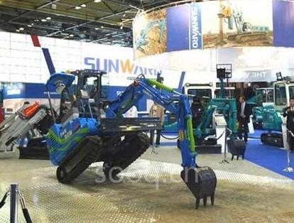 2009年法国INTERMAT展会上,山河智能自主开发的SWEROB2009全电控智能挖掘机------“会跳舞”的挖掘机,伴随着《蓝色多瑙河》优美的旋律,以其高难度的无人操控表演,书写了工程机械展会史上精彩的一页。