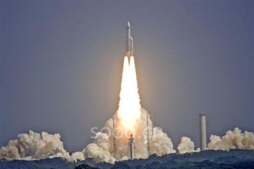 新华网巴黎5月14日电 格林尼治时间14日13时12分(北京时间14日21时12分)欧洲阿丽亚娜5-ECA型火箭携带欧航局世界最大远红外线望远镜“赫歇尔”及宇宙辐射探测器“普朗克”,从法属圭亚那库鲁航天中心发射升空。
