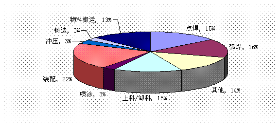 目前,焊接工业机器人在一汽、上汽、沈阳中顺、金杯通用、重庆长安、湖南长丰等整车制造企业广泛应用,据统计每辆汽车车身上,大约有3000~4000个电阻点焊焊点,电阻点焊技术的应用实现了汽车车身制造的量产化与自动化。