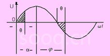 ,α为检测过零后设定的触发角,θ为功率因数角,