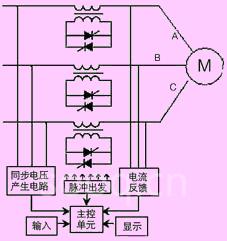 在电机软起动过程中,电机的端口电压是逐渐提高的,其电压大小取决于晶闸管的实际导通角