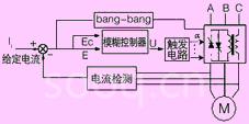 三相异步电机直接起动时会产生很大的危害。本文采用三相反并联晶闸管控制导通电压来实现电机的软启动。但要使电机的定子电压按某一特定规律变化是很困难的,原因是:电机的续流角决定于其功率因数角,而功率因数角又与电机转速相关,在电机起动过程中,电机转速的不断变化,会导致功率因数角的变化。因此,本文提出将模糊控制应用于中压异步电动机软启动器的控制中,有效解决了电流振荡问题,获得较好的控制效果。