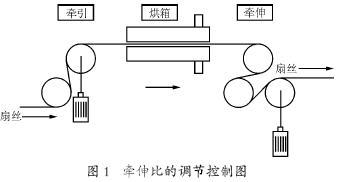 牵伸辊是塑编设备的重要组成部分,牵伸比的控制,决定着扁丝相对拉断力和断裂伸长率这两个重要指标的控制。同时,它也决定是否劈丝,线密度是否均匀等问题。牵伸比调节控制图如图1所示。