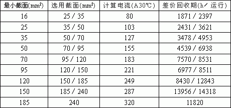 以上的计算仅考虑线路的有功损耗,未考虑截面加大后温升下降的影响。截面加大后线路无功损耗也会有所下降。