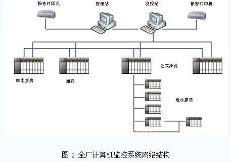 各PLC站与中控室之间采用工业以太网通讯联络。中控室由2台分别用于生产管理与监控的DELL计算机及2台Epson激光打印机组成。计算机采用Windows XP操作系统。其中监控计算机采用易控(INSPEC)组态软件开发的应用软件,可显示14个包括涉及PLC控制的机电、加矾加氯设备与滤池等在内的模拟画面,可对系统的所有设备进行远程操作和控制,并具备显示工艺布置图、实时动态参数、设备的工作状态及实时/历史报警信号、在线仪表的实时/历史趋势曲线、水泵运行时间等功能,同时可进行离线/在线编程及设定参数的修改,编制和打印生产与管理报表。管理计算机采用Excel软件,用于采集与存储监控计算机检测的主要生产数据,以便用于管理。