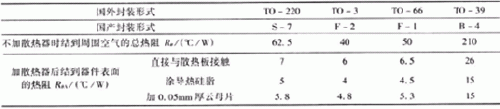 求得Rθd后,通过查散热片等效热阻与材料厚度和表面积关系的有关手册,可得到表面积的范围。表2列出了几种常用封装形式的热阻。