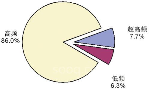 2008年中国RFID标签及阅读器市场频段使用结构