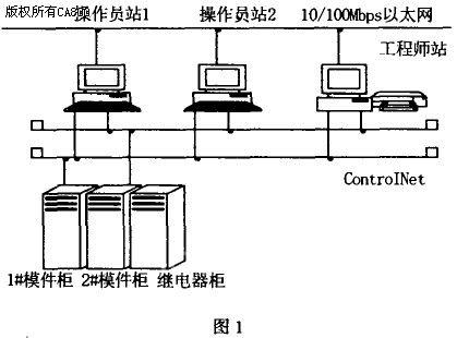 从图1可以看出,整个I)CS有一条主干线ControllNet网,1个现场控制站,2个操作员站,1个工程师工作站组成。系统ControllNet网采用双网冗余,保证了系统的稳定性和可靠性。网络信息层可与Ethemet通信。