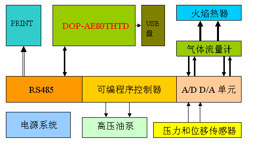 由气源、压力表、控制器;气体混合器;乙炔回火防止器,外燃型加热器;气体过滤器及气体快速接头;冷却循环泵等组成。加热器的火焰孔径大小及分布应保正钢轨断面处受热均匀,按照焊接工艺标准将钢轨加热到塑性状态的温度(一般为1300℃)。应有防止管路回火和防止漏气等安全措施。控制器比较复杂;由PLC部分开关量、模拟单元、人机介面、两个气体质量控制器(D07—9E)组成。特点流量大200SML(N2);线性度±0.2%F.S;准确度高±1.5%F.S;重复精度±0.2%F.S;响应时间1Sec;泄漏率<1×10-8SCCSHe;具有气体通道清洗、关闭、阀控功能