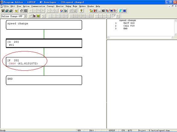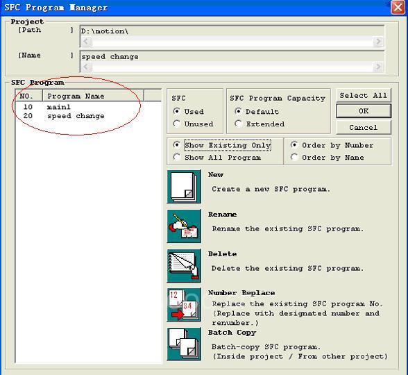 共有两个SFC程序,main1为定位主程序,speed change为改变速度的程序