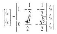 从a,b,c坐标系转换到d,q坐标系有克拉克(CLARKE)和帕克(PARK)变换来是实现;从d,q坐标系转换到a,b,c坐标系是有克拉克和帕克的逆变换来是实现的。以下是两个变换公式,克拉克变换(CLARKE):