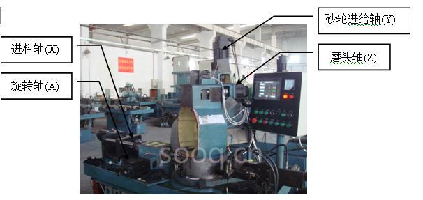 (3)NC(数控加工中心)系统:例如采用三菱的NCE60系统,控制三个轴(X+Y+A)实现产品的制作,主要实现了工件的进给和工件分度功能,砂轮的修整完全靠液压系统完成,是目前自动化程度较高的解决方案之一。