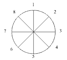偶数以一个8个刃数的铣刀为例,每个沟槽的加工顺序是1,5,2,6,3,7,4,8。即第一刃加工完成后,第一刃的起刀点与下一刃起刀点角度差为A,下一刃加工完成后这一刃的起刀点与后一刃的起刀点角度差为B,以此类推直到加工到最后一刃完成,如图2所示。。