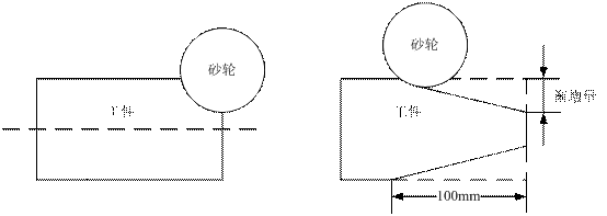 (2)砂轮渐增量进给控制。工件在加工过程中,沟槽深度是逐渐变浅的一个过程。渐增量是指工件送进100mm时,砂轮提升的高度,如图4所示。