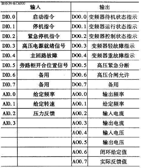 (2)变频装置与现场实现信号无缝接口,满足生产需要。变频装置与现场接口表如下:
