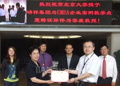 2009年5月31日,北京大学民营经济研究院授予研祥集团为EMBA企业案例教学点的仪式在研祥科技大厦举行,研祥智能公司总经理孙伟代表集团公司郑重从专程来深圳的北京大学民营经济研究院教务主任杨贵荷老师手中接过牌匾。南山区委统战部副部长、区民营工委书记姜甦等有关领导和嘉宾参加了授牌仪式。