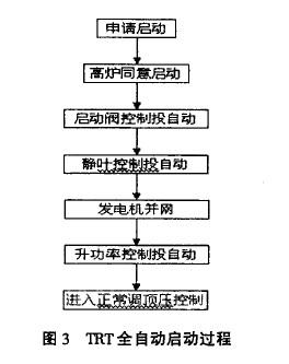 启动过程主要分为升转速、并网、升功率。为保证机组安全,TRT启机必须按照一定顺序有步骤的进行,如图3所示。