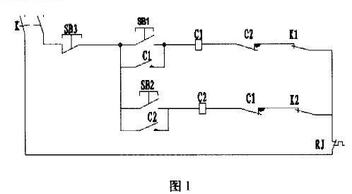 在此控制回路存在以下缺陷,当挡车器的挡杆刚刚预停在某个位置的时候,如果瞬间按下相反方向的按钮的时候,相反方向的接触器吸合,但由于惯性和本公司采用的单相电机是电容起动电动机,旋转起来后没有固定旋转方向,由于电机没有完全停止转动,此时还会按照电机原来的方向进行运转,此时就相当于失控状态,等到达限位开关时,由于其相对的限位开关没有动作,接触器仍然吸合,电机无法停机,直到电机由于过电流停机为止,此时极易烧毁电机。