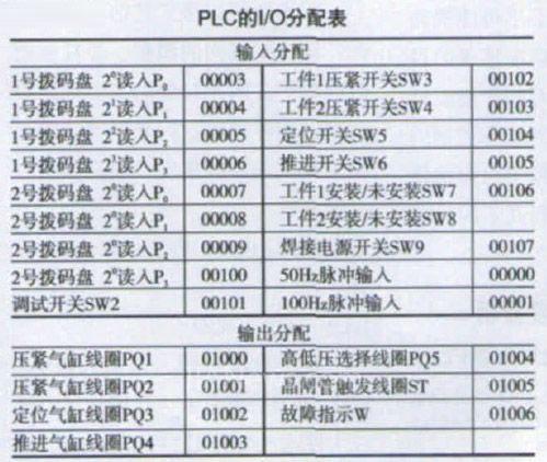 根据闪光对焊工艺要求,占用了PLC的17个输入点(00003~00009,00100~ 00107, 及00000和00001两个高速计数输入端) ,7个输出点(01000~ 01006),具体I/O分配如下表所示。