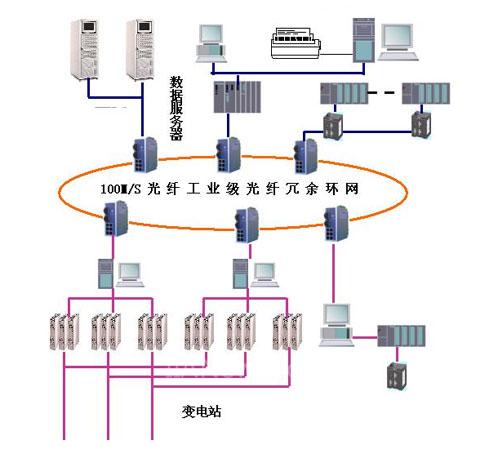 ●在本方案中,采用了2台前置(采集)处理机,2台系统(数据)服务器组成双机热备的SCADA系统; 2台调度员工作站;1台微机组成EMS能量管理工作站;1微机组成DTS调度员工作站;1台工程师维护站;1台激光打印机。SCADA可实现与厂站RTU的实时通信。设置网关服务器与公司的管理网联网并实现远程诊断。本方案采用上海兆越通讯技术有限公司工业级光纤冗余以太网结构,前置(采集)处理机、系统服务器、调度员工作站、工程师站、EMS工作站、DTS工作站都工作在冗余网络中。当一路网络出现故障时,该设备会启动冗余功能确保通信可以通过另一条网络完成。