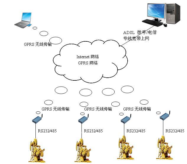 7、系统的传输容量,扩容性能好:油井监控中心要和每一个油井数据采集点实现实时连接。由于油井数据采集点数量众多,系统要求能满足突发性数据传输的需要,而GPRS技术能很好地满足传输突发性数据的需要;由于系统采用成熟的TCP/IP通信架构,具备良好的扩展性能,一个监控中心可轻松支持几千个现场采集点的通信接入。