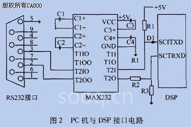 PC机与DSP串行通信的实现包括三个部分,即硬件设计、上位机程序设计、下位机程序设计。