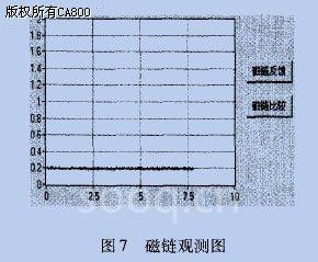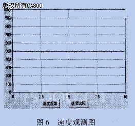 利用DSP的SCI模块和MSComm控件可以方便地实现DSP与Pc机的串行通信。本文所介绍的设计方法已在Pc机和以TMS320LF2407为核心的直接转矩控制系统试验平台上进行了验证,结果表明:可以通过Pc机对永磁同步电机进行控制。图5为上位机监控界面,它包括参数发送和数据采集两部分,可以显示速度、磁链、转矩的给定值和实际值,便于用户比较。图6为永磁同步电机空载运行时的速度观测图。其中:直线代表速度给定值,曲线是速度实际值。速度给定值为500 r/min,通过转速表测量,转速为499r/min,从图中可以看出速度以极小的误差围绕给定值波动,证明了转速能被很好地控制住。图7为磁链标幺值的给定值与实际值比较图,磁链给定值为200,DSP中采用Q12格式,最后经过计算反馈到上位机时应为0.2,直线是给定值,曲线是实际值,在图中可以看出超调量很小,磁链参数也能准确地反馈到Pc机上,与试验预期结果相符。