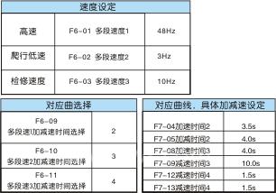 假设多段速1为高速、多段速2为爬行、多段速3为检修,以1m/s为例