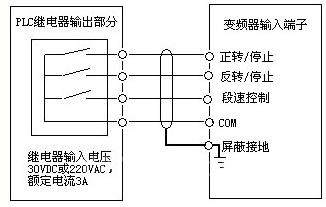 图1 A 继电器型PLC输出与变频器连接的运行方式