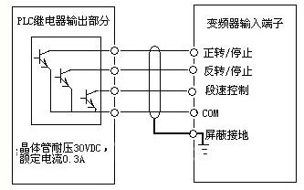 图1 B 晶体管型PLC输出与变频器连接的运行方式