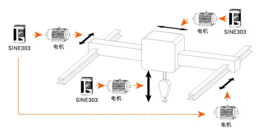 行车是一种内部搬运设备,广泛应用于车间和仓库。一般情况下行车由四个锥形电机驱动,前后运动两个电机,左右运动一个电机,货物上下运动一个电机。