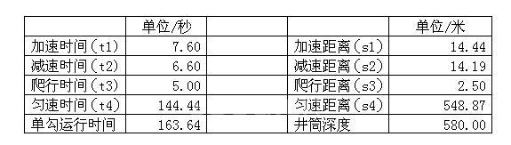 图5、 控制系统原理 3、 改造后的效果计算 3.1 现场设备参数 (1)提升机规格: GKT—2×2×1—20 (2)卷筒名义直径 2000㎜ (3)卷筒宽度 1000㎜ (4)卷筒个数 2个 (5)钢丝绳最大静张力 6000Kg (6)钢丝绳最大静张力差 4000Kg (7)钢丝绳直径 32㎜ (8)减速器名义速比 20 (9)最大提升高度(斜长) 580m (10)最大提升速度 3.8m/s (11)坡度 25° 我们按照加、减速度为0.5m/s2,爬行速度0.5m/s,爬行时间5 s来计算,单勾运行情况见下表