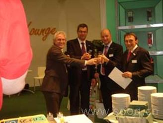 PI组织庆祝赫优讯率先获得PROFINET IRT设备证书,从左至右依次是:Dr. Peter Wenzel,Xaver Schmidt,André Loburg与赫优讯全球总裁Hans-Jürgen Hilscher