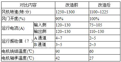 2号窑尾高温风机变频器于10月5日正式投入运行。投运后运行状况稳定良好、故障率极低、运行电流和风机振动值均有下降,完全可以满足于生产工艺控制的要求,具体数据详见下表: