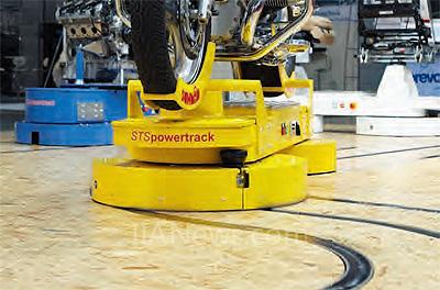 旋转工作台在BMW德国东南方小镇Dingolfing的轮轴组装工厂扮演非常重要的角色。安全区域激光扫描仪S300监控它们的行径路线并且在单一组装站中管理轨道无人搬运车的行驶空间。
