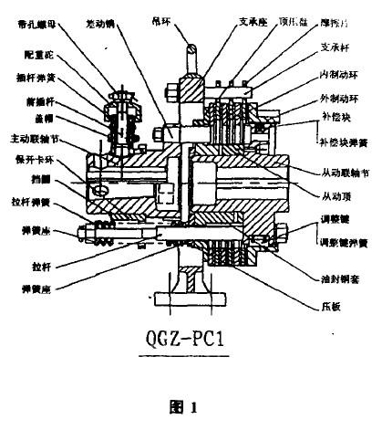 全惯性常闭制动器,是利用电机的驱动力,对负载的作用与反馈,通过与其成为一体的联轴器,带动内部机构实施制动和解除制动,并运用独特的结构设计,来实现动态防风的新一代机械制动器产品(具体结构见图1)。这种惯性制动器起动时不带磨擦负荷,无滞后现象;操作频率不受限制,设有延时装置,可实现动态防风和延时制动;其摩擦材料磨损均匀,可进行补偿调节;结构紧凑,安装调试简便。