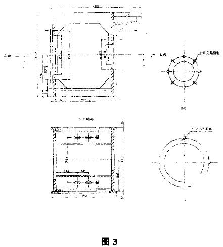 为了解决配套与安装中的问题,我们在K0NE门机机构改造中,解决了以下三个问题:① 根据电机输出轴、减速箱输入轴的实际尺寸参数,设计、配制了轴套,和惯性制动器的两半联轴节配装。② 由于电机、减速箱是悬挂式的,电机和减速箱之间必须有固定支架,给惯性制动器提供安装底座和起到连接法兰作用。固定支架的设计和安装如图2和图3所示。③ 因电机、制动器等都在户外,雨水、粉尘多,工作环境差,相应的在固定支架和电机上加装活动罩壳,起到防水、防尘和安全防护作用。
