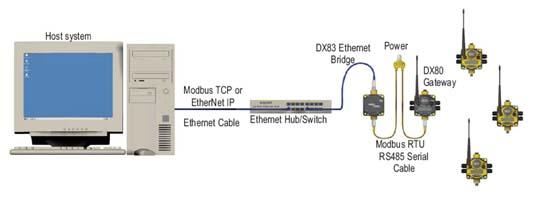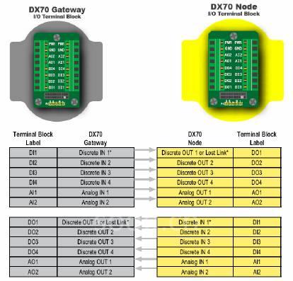 DX70 无线网络系统可将现场离散传感器信号通过节点传输到控制室的的网关。可以支持各种传感器的输入,如开关量、模拟量、热电偶等信号。采用跳频扩频技术(FHSS),抗干扰性能好。SureCross节点可连接液位、PH值、电导率和流量等各种模拟量信号,而这些模拟量信号分散在水处理厂的不同的地方,节点通过网关将数据发送到中央控制中心,DX70的无线网络系统解决了污水处理厂环境的障碍、资源的影响等因素,明副其实地成为了连接分布在污水处理各个环节传感器眼睛的视觉神经网络系统。